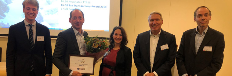 The award is based on the fourth annual Tax Transparency Benchmark published by VBDO, the Dutch association of investors for Sustainable Development. With the tax position of international companies increasingly under scrutiny by politicians, NGOs and the media, the Transparency Benchmark is particularly relevant.
